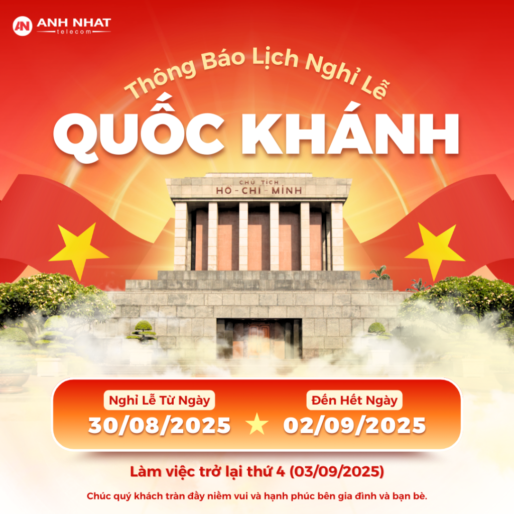 Nếu phát sinh vấn đề kỹ thuật khẩn cấp trong thời gian nghỉ lễ, Quý khách vui lòng ghi lại tình trạng thiết bị và liên hệ với bộ phận chăm sóc khách hàng sau ngày 03/09 để được xử lý nhanh chóng. - Đơn hàng Online qua website vẫn có thể đặt bình thường trong kỳ nghỉ. Tuy nhiên, mọi đơn hàng sẽ được xử lý sau khi chúng tôi quay lại làm việc.